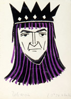 Maquette de tête armée de Jean Vilar pour la mise en scène de Macbeth par Jean Vilar au TNP en 1954 avec les décors et costumes de Mario Prassinos. Gouache sur papier, 32 x 24,5cm |