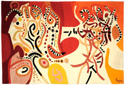 Les artistes de La Demeure Galerie Chevalier La tapisserie de Mario Prassinos "Deux combattants", tissées